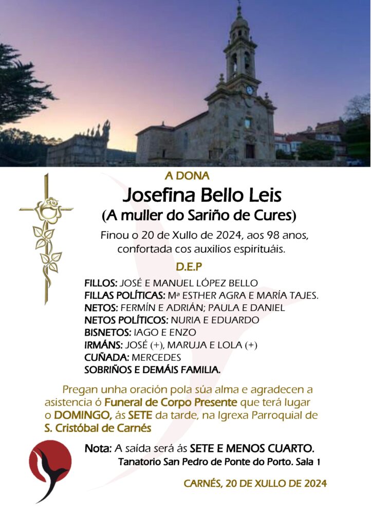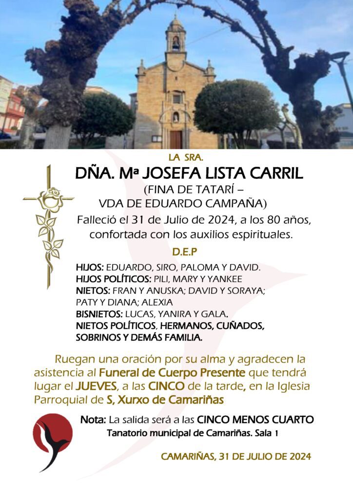 CARANTOÑA EL FUNERAL DE CUERPO PRESENTE Y ENTIERRO SERÁN AMBOS EN EL CEMENTERIO PARROQUIAL DE CARANTOÑA