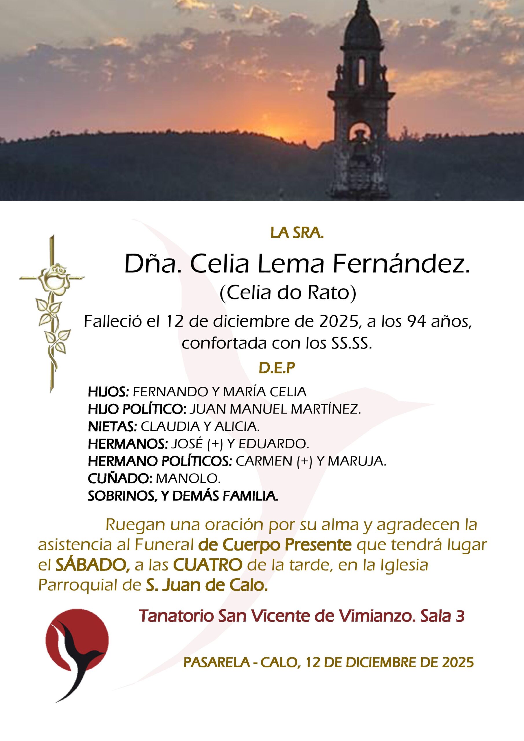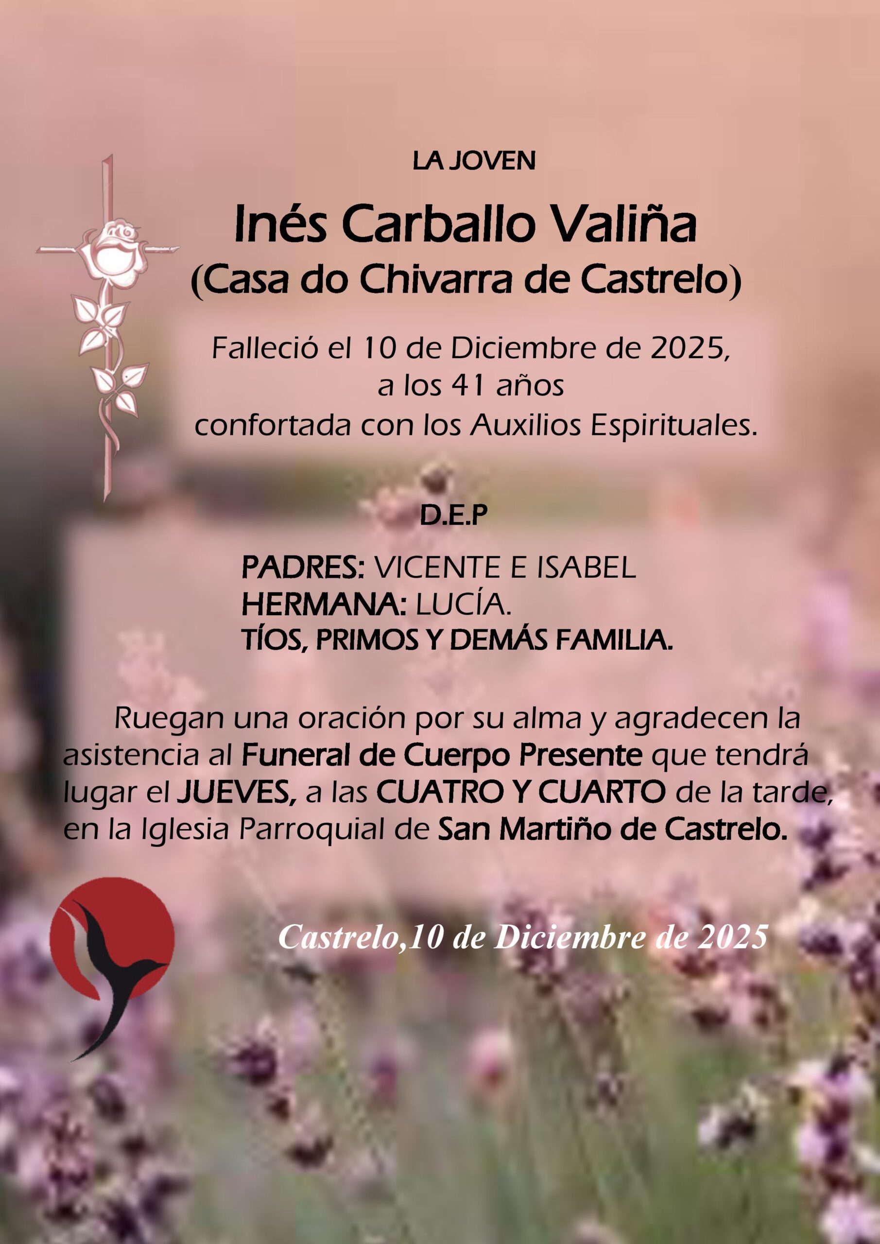 (Lupe do Chinto) CAMARIÑAS EL VELATORIO COMENZARÁ A LAS DIEZ DE LA MAÑANA